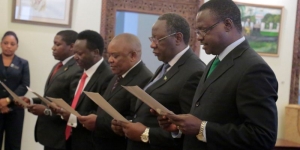 Viongozi walioapishwa wakila kiapo cha maadili ya utumishi wa umma