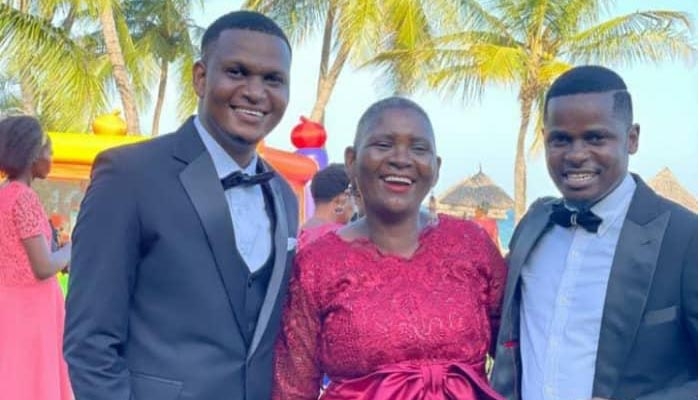 Mama mzazi wa mshereheshaji Emmanuel Matebe maarufu kama MC Pilipili, Mariam Matebe katikati akiwa na wanae.