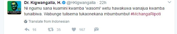 Kigwangalla amesema hayo kupitia ukurasa wake wa kijamii 'twitter' baada ya ile ripoti ya mchanga wa madini (makenikia) kuwa na udanganyifu wa viwango na aina za madini yaliyomo katika mchanga huo unaosafirishwa kuenda nje za nchi.