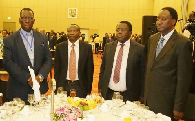 Meza kuu ikiwa imesimama kwa Wimbo wa Taifa