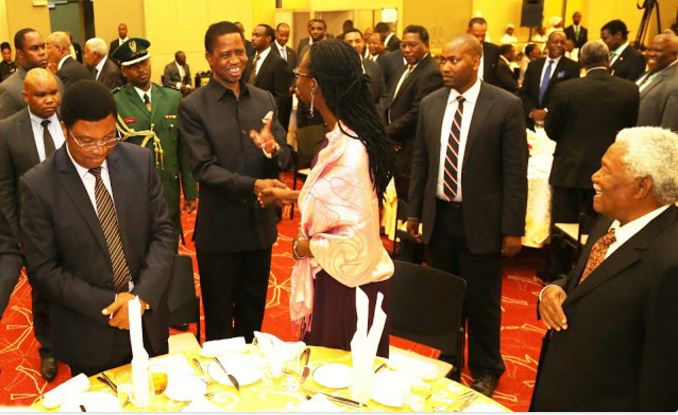 Rais Edgar Lungu wa Zambia akisalimiana na Naibu Spika Dkt Tulia Ackson