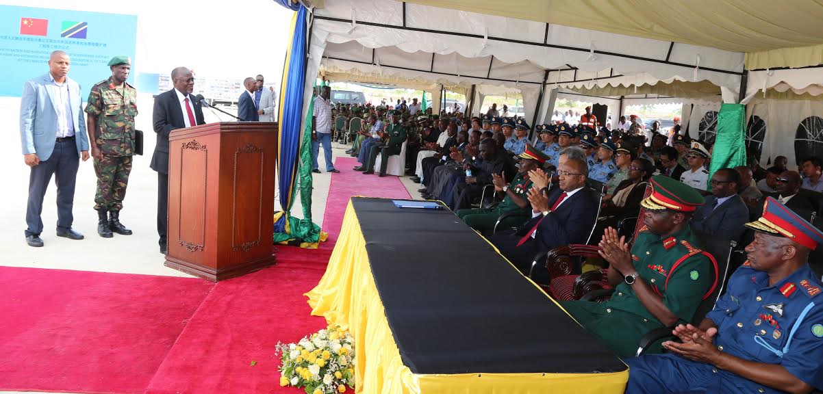 Katika hotuba yake, Mhe. Rais Magufuli amelipongeza Jeshi la Ulinzi la Wananchi wa Tanzania (JWTZ) kwa kazi kubwa linayofanya na pia amemshukuru Rais wa Jamhuri ya Watu wa China Mhe. Xi Jinping na Serikali yake kwa msaada mkubwa iliyoutoa kujenga uwanja huo.