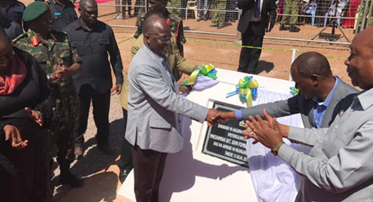 Mhe. Rais Magufuli akiweka jiwe la msingi leo katika ufunguzi wa barabara ya Kigoma-Biharamulo-Lusahunga yenye urefu wa Kilometa 154.