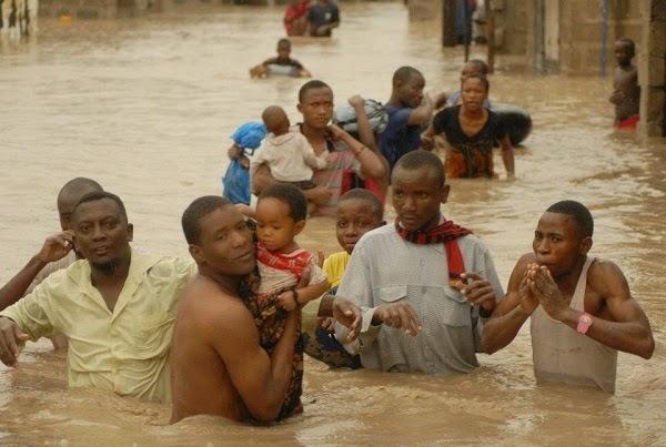 Baadhi ya wananchi wakijiokoa kutoka katika mafuriko.