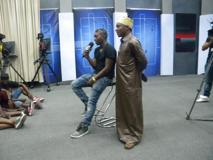 majaji wa shindano la Dance100% Shetta na Super Nyamwela wakitoa somo kwa washiriki 15 wa Dance100% 2015