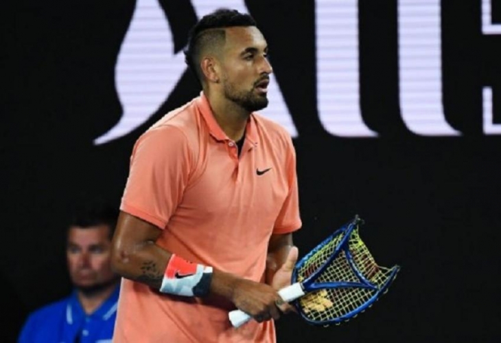 Nyota NIck Kyrgios akiwa ameshika raketi ikiwa imevunjika