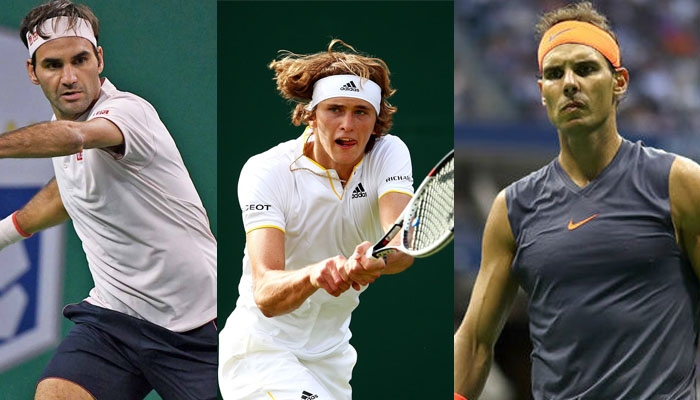 Kushoto ni Roger Federer, Alexander Zverev na Rafael Nadal.