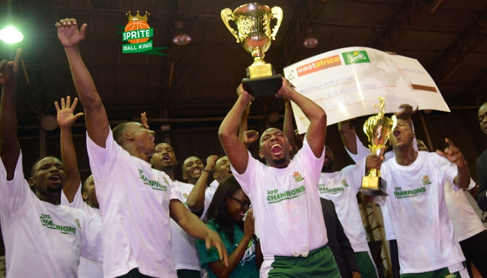 Wachezaji wa Mchenga Bball Stars wakishangilia ubingwa wao