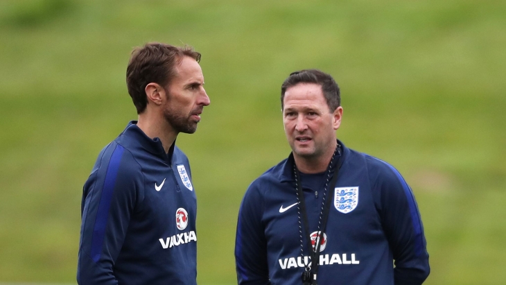 (Kocha mkuu wa England Gareth Southgate na Msaidizi wake Steve Holland wakiwa mazoezini)