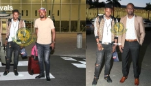 Mshambuliaji Owe Bonganya (wa kwanza kushoto) akiwa na wakala wake pamoja na mwakilishi wa mdhamini wao.