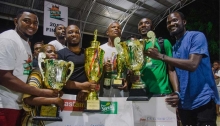 Kocha wa Mchenga (wa kwanza kushoto), MVP Baraka Sadick (wa tatu kutoka kulia) wakiwa na baadhi ya mashabiki