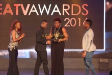Mkuu wa Mawasiliano VODACOM, Nandi Mwiyombella (wa pili kushoto) akikabidhi tuzo kwa Alikiba katika usiku wa EATV Awards