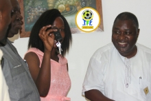 Rais wa Shirikisho la Soka Tanzania (TFF) Jamal Malinzi leo amemkabidhi Mwamuzi kutoka Tanzania Jonasia Rukyaa funguo ya gari alilozawadiwa kwa kuchezesha vizuri katika fainali za wanawake barani Afrika, zilizofanyika nchini Cameroon hivi karibuni.