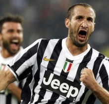 Beki wa klabu ya Juventus Giorgio Chiellini akishangilia moja ya bao aliloifungia klabu yake katika mechi za Seria A.