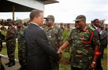 Amiri Jeshi Mkuu Rais Jakaya Mrisho Kikwete akiagana na makamanda wakuu wa JWTZ.