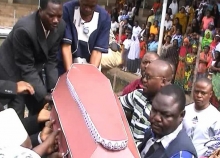 Baadhi ya waombolezaji wakiwa wamebeba jeneza lenye mwili wa Marehemu Nasra Mvungi katika uwanja wa jamhuri Morogoro, muda mfupi kabla ya maziko.