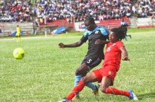 Beki Taifa Stars Oscar Joshua akikabiliana na mchezaji wa Malawi katika mechi ya kirafiki jijini Mbeya