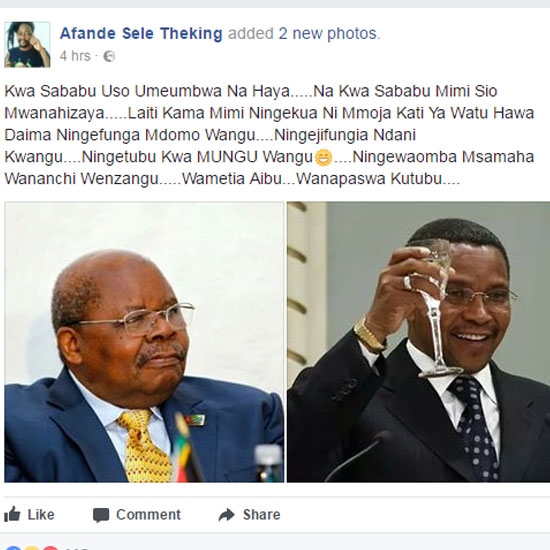 "Kwa sababu uso umeumbwa na haya na kwa sababu mimi siyo mwanahizaya. Laiti kama mimi ningekua ni mmoja kati ya watu hawa daima ningefunga mdomo wangu, ningejifungia ndani kwangu, ningetubu kwa Mungu wangu, ningewaomba msamaha wananchi wenzangu kwani wametia aibu wanapaswa kutubu" alisema Afande Sele
