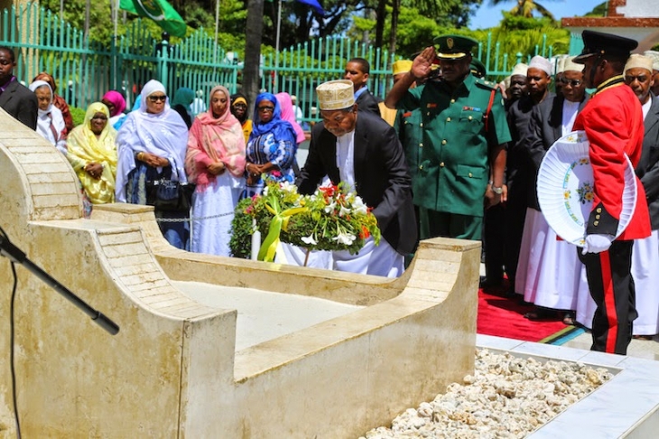 Baada ya kisomo hicho viongozi hao wakuu wameshirki katika uwekaji wa mashada ya maua katika kaburi la marehemu karume ambapo mbali ya Dkt Shein viongozi wengine waliofuata kuweka mashada hayo ni makamu wa Rais Dkt Mohamed Gharib Bilal kwa niaba ya Rais Kikwete akifuatiwa na mnadhimu mkuu wa jeshi la wananchi na vikosi vya ulinzi luteni jenerali Samuel Ndomba balozi mdogo wa china Xie Yualing kwa niaba ya mabalozi, na kufuata mzee Hamid Ameir kwa kuwakilisha wazee na wana mpinduzi huku balozi Ali Karume akiwakilisha familia ya marehemu Karume.