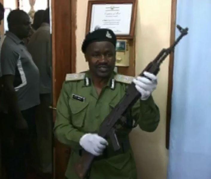 Kamanda Mtui akionesha bunduki iliyokamatwa