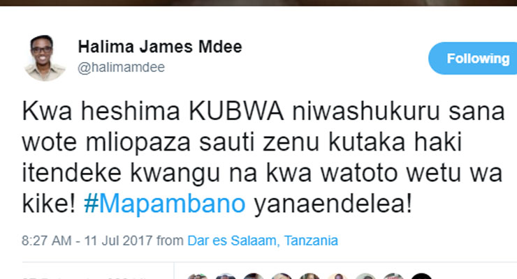 "Kwa heshima kubwa niwashukuru sana wote mliopaza sauti zenu kutaka haki itendeke kwangu na kwa watoto wetu wa kike! Mapambano yanaendelea!" aliandika.