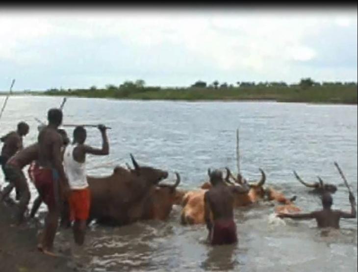 Wafugaji na wafanyabiashara wanalazimika kuvusha mifugo kwenye mto malagarasi wenye upana wa zaidi ya mita thelathini kwa kuwatumbukiza ndani ya mto huku vijana waliojiajiri kwa kuvusha wakisaidia ng’ombe kuvuka.