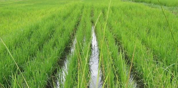 Moja ya mashamba ya mpunga yanayotumia kilimo cha umwagiliaji