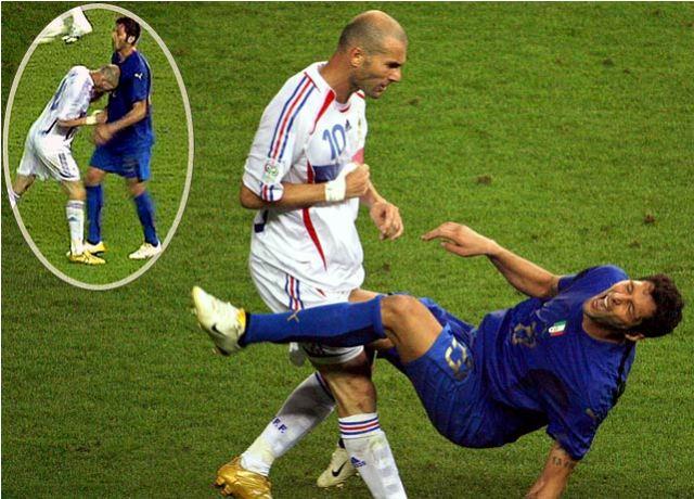 kocha mpya wa Real Madrid Zinedine Zidane enzi zake za uchezaji akifanya tukio la kihistoria la kumpiga kichwa beki wa Italia Marco Materazzi kwenye fainali za kombe la dunia nchini Ujerumani.