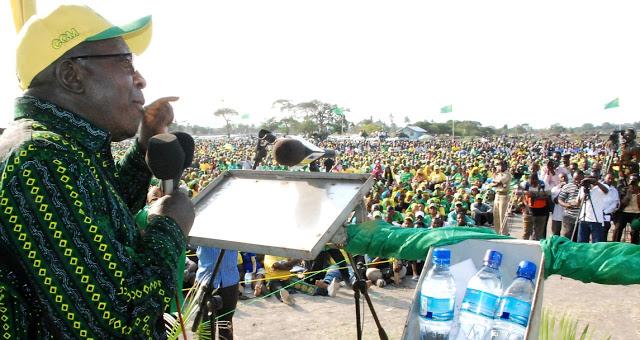 MBUNGE wa jimbo la Kyela na waziri wa Afrika Mashariki Dr,Harrison,Mwakyembe akihutubia wananchi katika mkutano wa Hadhara.