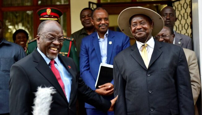Rais wa Uganda Yoweri Museveni (kulia) na Rais Magufuli (kushoto)