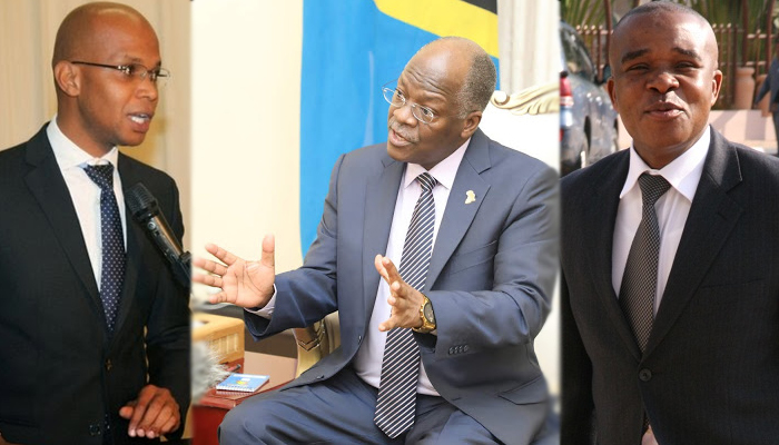 Kutoka kushoto ni January Makamba, Rais Magufuli na William Ngeleja.