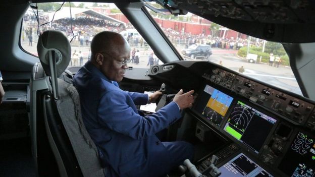 Rais Magufuli alipokuwa akipokea moja ya ndege za ATCL.