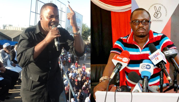Mbunge Godbless Lema, kulia ni Mkuu wa Idara ya Habari CHADEMA Tumaini Makene.