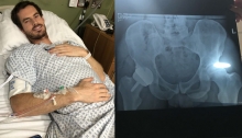Murray baada ya kufanyiwa oparesheni, picha ya kulia ni ya X-Ray ikionesha alivyounganishiwa chuma kwenye nyonga ya kushoto.