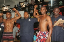 Promota wa mchezo wa masumbwi nchini Jay Msangi (Katikati) na Cosmas Cheka (kulia)