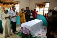 Rais Kikwete akiongoza dua ya kumuombea Marehemu Mzee Small muda mfupi kabla ya maziko yake