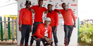 Kundi la Wakali Sisi Likikabidhiwa Hundi pamoja na Kombe na zawadi zao na Meneja Uhusiano wa Umma kutoka Vodacom, Bwana Matina Nkurlu