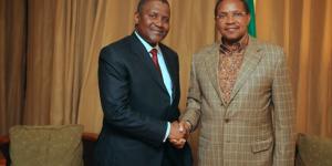 Rais Kikwete (Kushoto) akiwa na Aliko Dangote mmiliki wa kiwanda kikubwa zaidi cha Saruji duniani kilichoko Nigeria