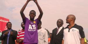 Kiungo wa Mbeya City Anthony Matogoro akiwa amenyanyua tuzo ya mchezaji bora wa mwezi wa tisa.