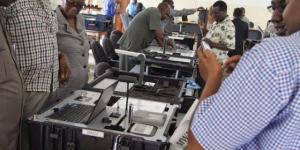 Wataalamu wa Mashine za BVR, wakizikagua mashine hizo kabla hazijapelekwa vituoni.
