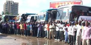Baadhi ya madereva na abiria wakiwa wamesimama mbele ya mabasi katika Kituo Kikuu cha Mabasi Ubungo Mei mwaka jana.