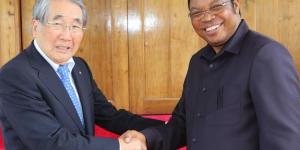 Waziri Mkuu, Kassim Majaliwa akiagana na Mtendaji Mkuu wa Kampuni ya KOYO ya Japan, Bw. Norio Shoji