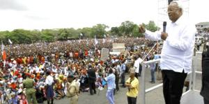 Mgombea Urais wa Tanzania wa UKAWA kupitia Chama cha Demokrasia na Maendeleo (CHADEMA), Mh. Edward Lowassa, akiwahutubia na kunadi sera zake kwa wananchi