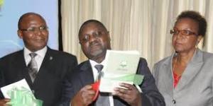 Mkurugenzi Mkuu wa Taasisi ya Utafiti wa Masuala ya Kiuchumi na Kijamii ESRF Dkt Bohela Lunogelo (wa kwanza kushoto) akiwa katika picha ya pamoja na Katibu Mkuu wizara ya Fedha Dkt Servacius Likwelile (katikati).