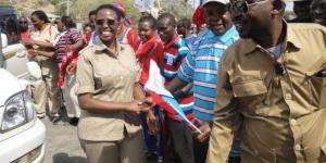 Baadhi ya wananchi waliokuwepo mahakamani wakitaka kuwashushia kipigo watuhumiwa kabla ya kuokolewa na askari kwa kupakiwa kwenye gari ndogo inayoonekana pichani