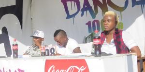 majaji wa shindano la Dance100% Shetta na Super Nyamwela wakitoa somo kwa washiriki 15 wa Dance100% 2015