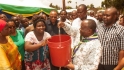 Mwenyekiti wa Chama cha Albino Tanzania Bw. Ernest Kimaya akisoma nakala za Katiba Inayopendekezwa yenye maandishi yaliyokuzwa mara baada ya kukabidhiwa.