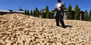 Waziri Mkuu,Mizengo Pinda akikagua mavuno ya mahindi kutoka shambani kwake yaliyokusanywa nyumbani kwake Kibaoni wilayani Mlele,