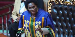 Spika wa Bunge la Jamhuri la Muungano wa Tanzania Bi. Anne Makinda akisisitiza Jambo Bungeni.