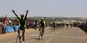 Mmoja wa washiriki wa shindano la Baiskeli nchini akishangilia ushindi wake.
